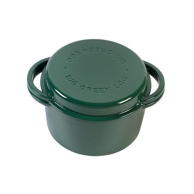 De Big Green Egg Green Dutch Oven Rond is een veelzijdige gietijzeren braadpan die speciaal is ontworpen voor gebruik op de Big Green Egg. Deze robuuste pan is perfect voor het langzaam garen van stoofgerechten, soepen, en zelfs het bakken van brood. Dankzij het hoogwaardige gietijzer wordt de warmte gelijkmatig verdeeld, wat zorgt voor een constante temperatuur en een optimaal kookresultaat.