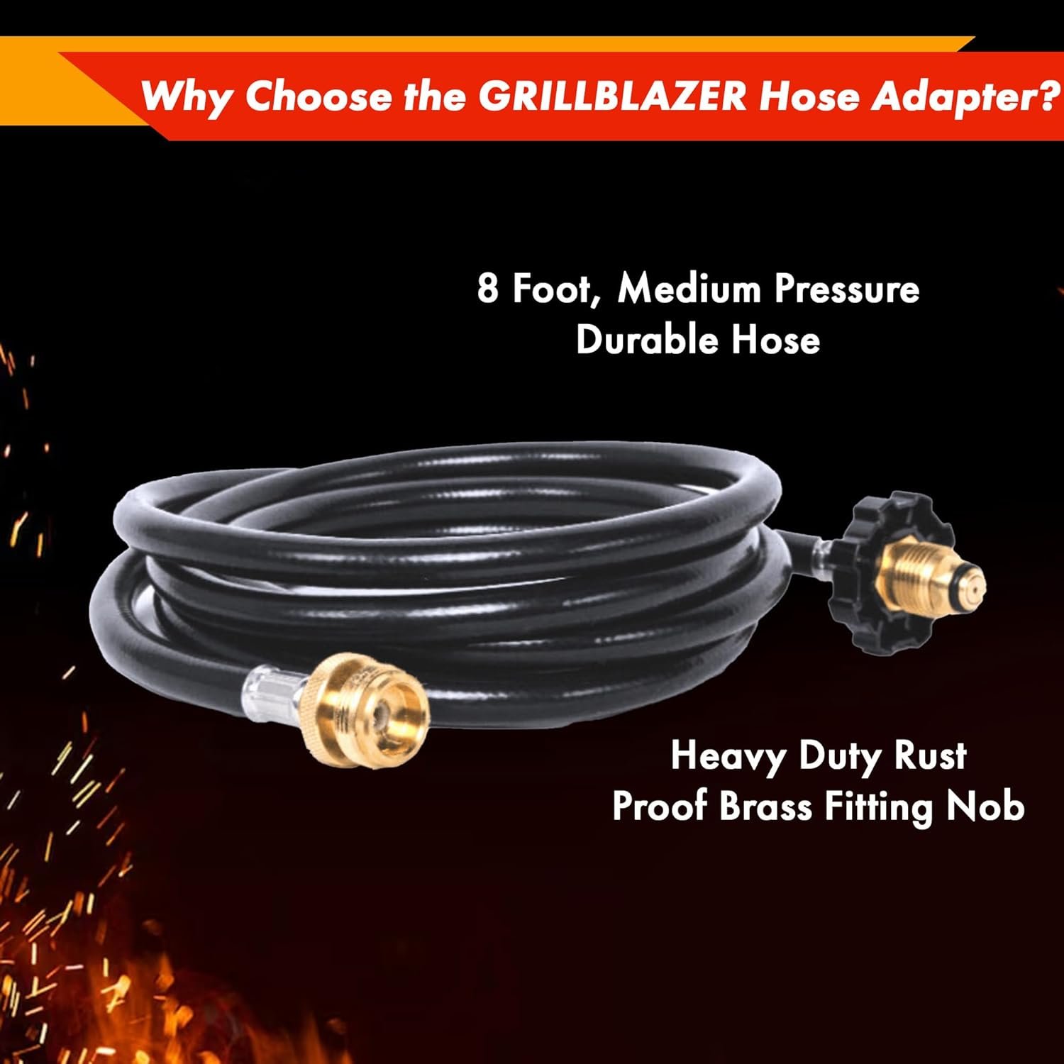 Bespaar geld op propaan door de 2,4 meter lange adapterslang te gebruiken om uw GrillGun of Su-VGun aan te sluiten op een 9 kg propaanfles. Profiteer van lagere kosten en grotere inhoud van propaantanks.