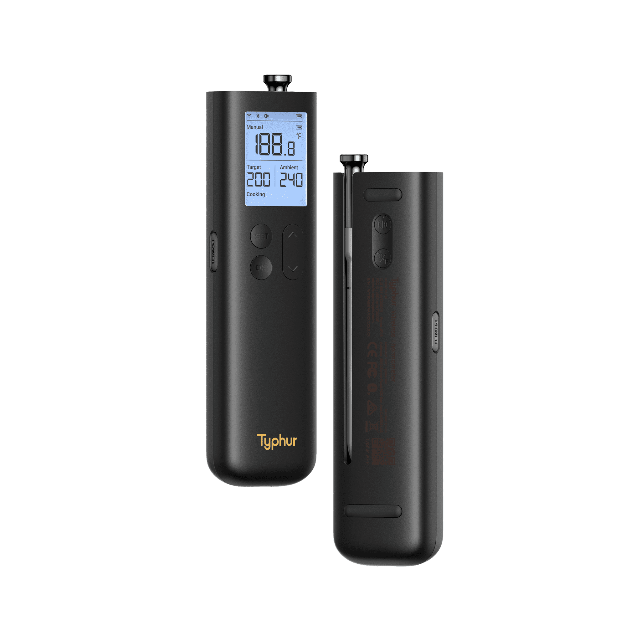 • Wi-Fi Booster met onbeperkt bereik: Verbind de basisunit met je Wi-Fi netwerk en volg realtime temperatuurdata van je gerechten overal via de Typhur-app.